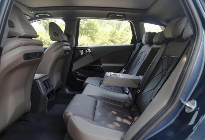 拉开车门,后排加长111毫米,超过1米的腿部空间令人拍手。中国专属的舒适座椅坐垫加长65毫米、加厚10毫米,长途乘坐时膝盖不再悬空,104度的靠背角度更是贴合人体曲线。创新的舒适角设计将C柱、座椅、后门板用同材质软包围合,形成包裹感十足的休憩空间,配合全景星轨天幕的光影变幻,后排俨然成为老板座舱。后排无线充电板与Type-C接口的布局,虽牺牲了中央杯架,但更贴合现代人手机不离手的“坏习惯”。